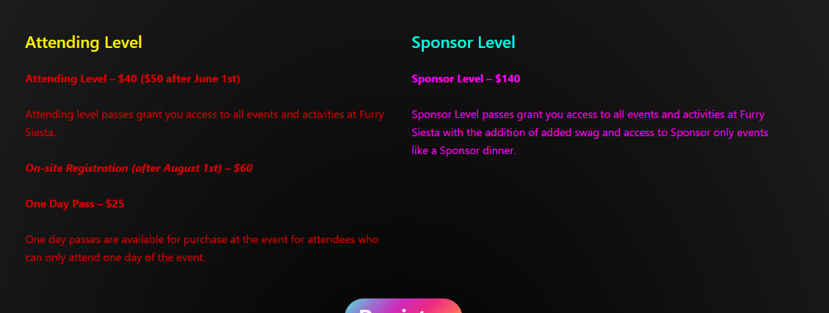 A Sponsor shows everyone you like the con and want to help make it better. As a Sponsor, you will receive all of the benefits of attending, as well as the following gifts: