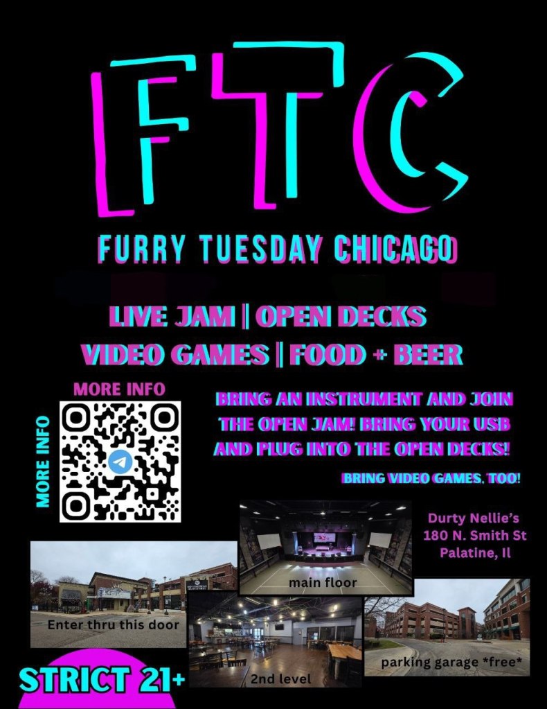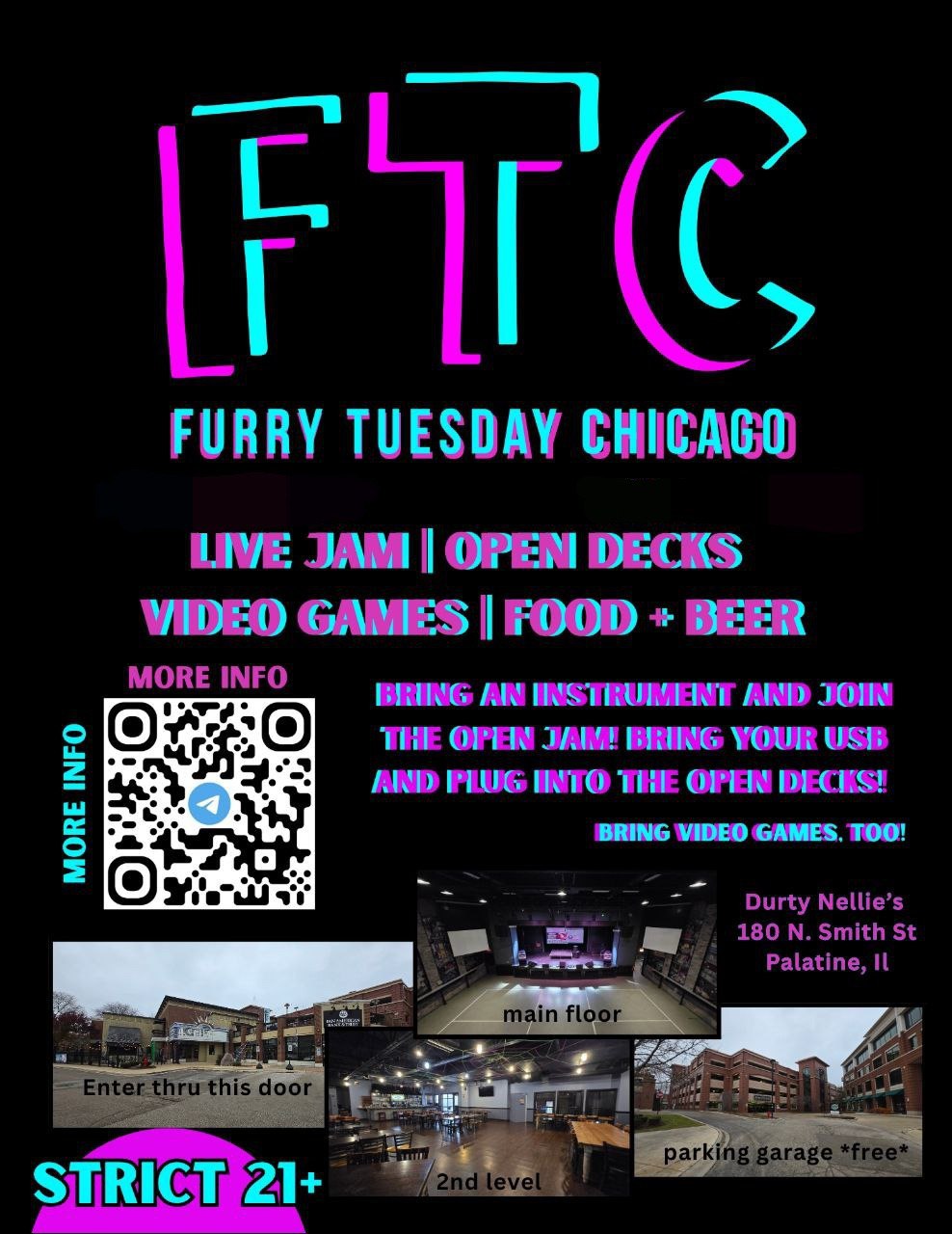 A place in Chicagoland burbs where you can play live on stage, have open decks, play your video games, great food menu, beer. 21+