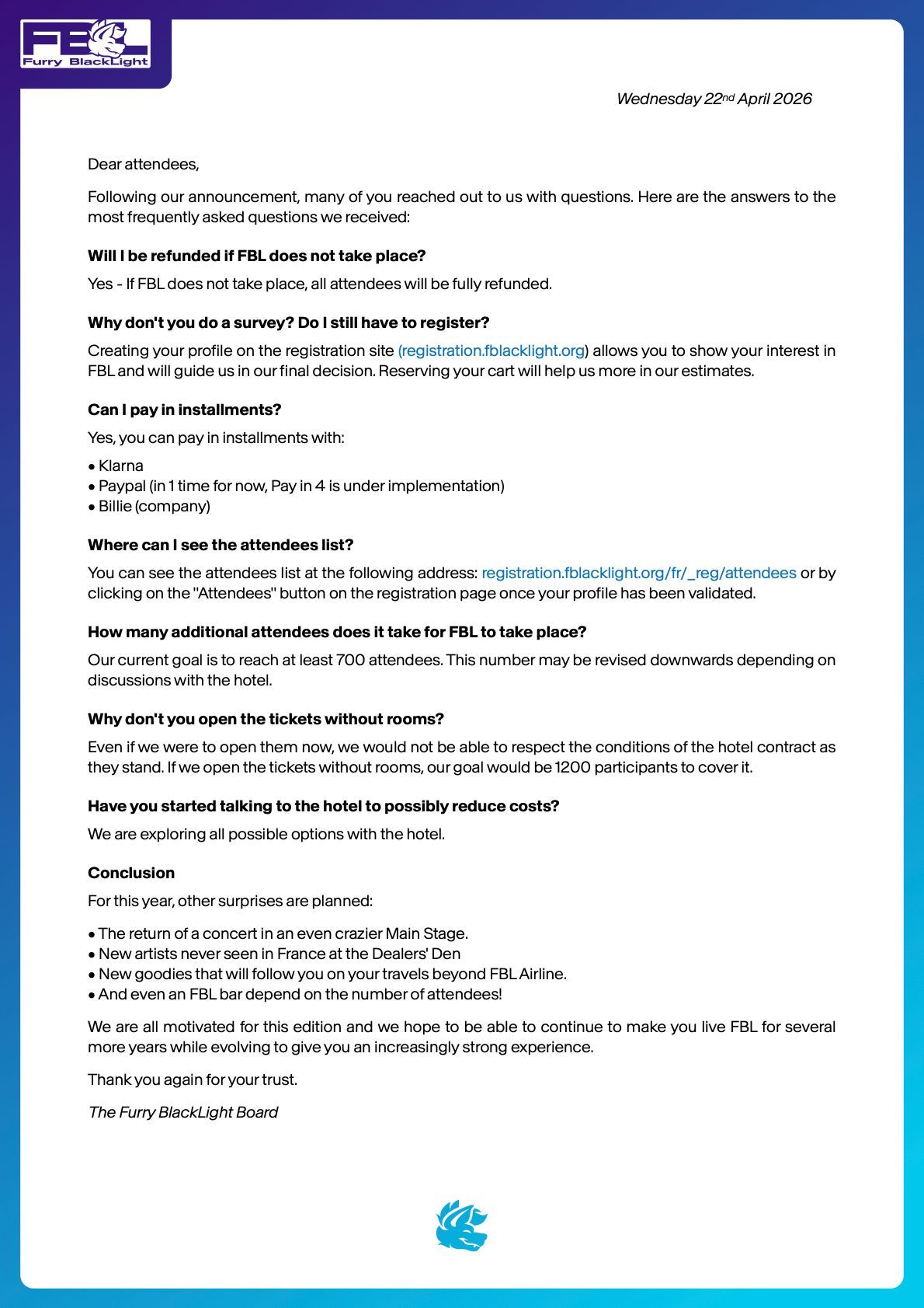 Make sure that all of your event pass details are updated. If you’re looking to transfer your event pass to someone else, upgrade your event pass, or modify your information, do it soon! We cannot accommodate any transfer, change, or update request after the deadline.