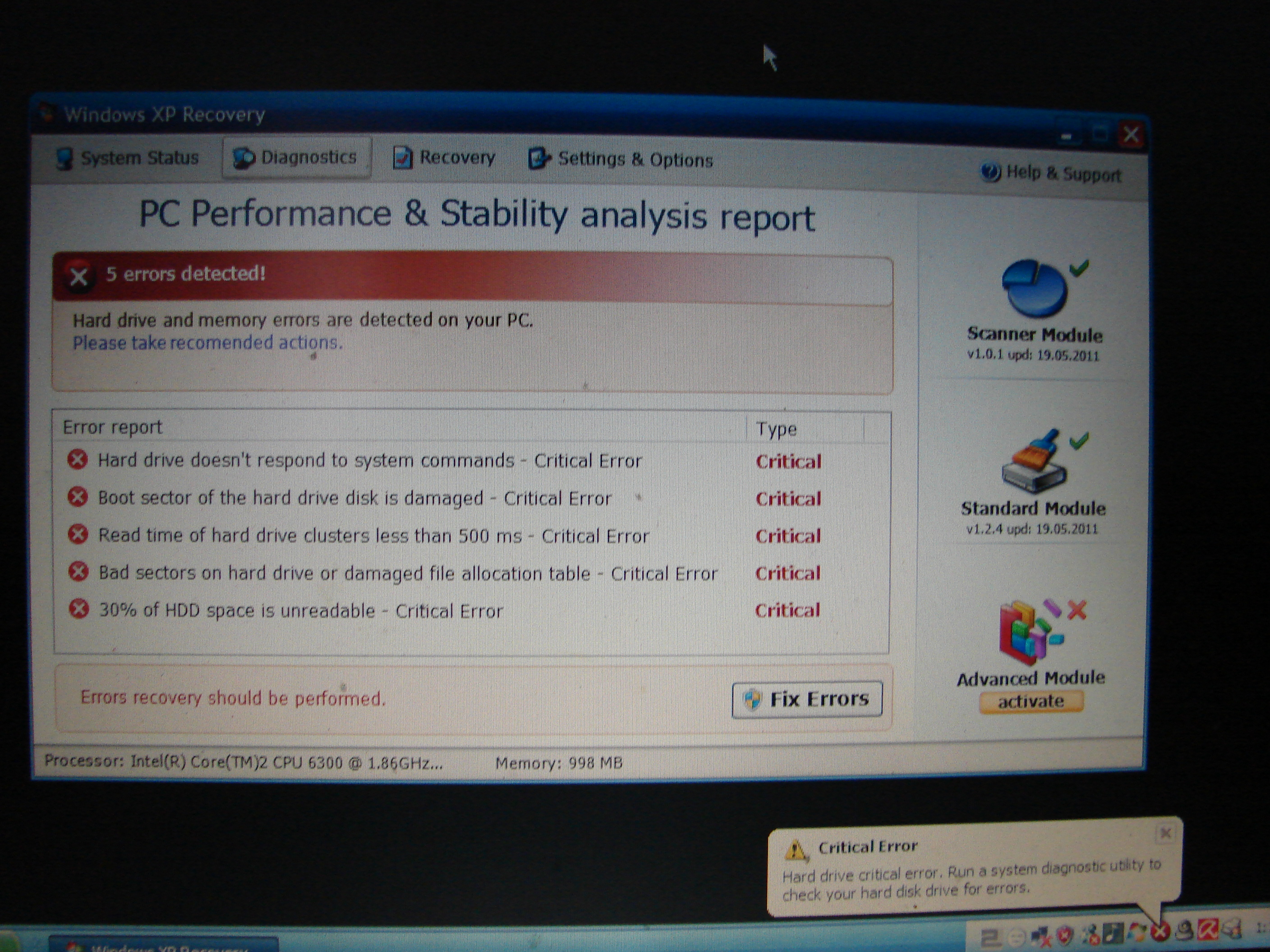 You notice it says ‘Hard Drive Not Found’, for any modern computer this is impossible. Ask yourself this ‘If the hard drive was missing’ wouldn’t you get blue screen of death.