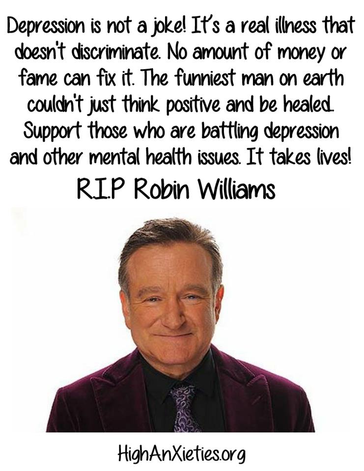 We all woke up this morning a little sadder upon hearing the news that Robin Williams died yesterday of an apparent suicide. I knew of his battles with drugs and alcohol over the past years, but the depression he also battled was a great shock, as I guess it was to most of us. I can only guess behind all that humor, was a sad man crying out for help.