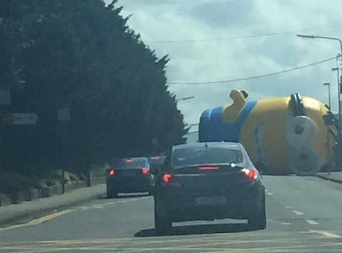 The Gardai – the Irish police – were called to the Santry area of Dublin at 3pm on Monday. With the help of passers-by they managed to let the air out of the yellow inflatable, a promotional character from the film Minions which began life in the hit animation Despicable Me.