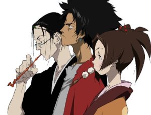 A young woman named Fuu is working as a waitress in a tea shop when she is abused by a band of samurai. She is saved by a mysterious rogue named Mugen and a young rōnin named Jin. Mugen attacks Jin after he proves to be a worthy opponent. The pair begin fighting one another and inadvertently cause the death of Shibui Tomonoshina, the magistrate’s son. For this crime, they are to be executed. With help from Fuu, they are able to escape execution. In return, Fuu asks them to travel with her to find “the samurai who smells of sunflowers”.