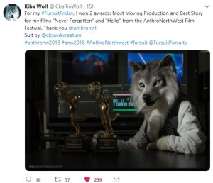Kiba Wolf won 2 awards at AnthroNorthWest Film Festival. For Most Moving Production and Best Story for the following videos.
