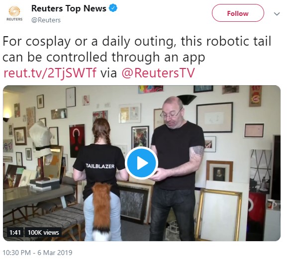Robotic Tail Phone App Posted on 03/08/2019 by Ahmar Wolf You can watch the entire video by clicking here Share this: Click to share on Pinterest (Opens in new window) Pinterest Click to share on Facebook (Opens in new window) Facebook Click to share on X (Opens in new window) X Click to share on Tumblr (Opens in new window) Tumblr More Click to share on LinkedIn (Opens in new window) LinkedIn Click to print (Opens in new window) Print Click to email a link to a friend (Opens in new window) Email Like Loading... Published by Ahmar Wolf I am interested in just about everything View all posts by Ahmar Wolf