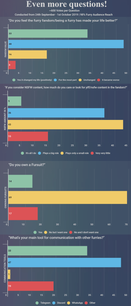 FUZZNET Recent Furry Survey Posted on 10/11/2019 by Ahmar Wolf Original Posting Share this: Click to share on Pinterest (Opens in new window) Pinterest Click to share on Facebook (Opens in new window) Facebook Click to share on X (Opens in new window) X Click to share on Tumblr (Opens in new window) Tumblr More Click to share on LinkedIn (Opens in new window) LinkedIn Click to print (Opens in new window) Print Click to email a link to a friend (Opens in new window) Email Like Loading... Published by Ahmar Wolf I am interested in just about everything View all posts by Ahmar Wolf