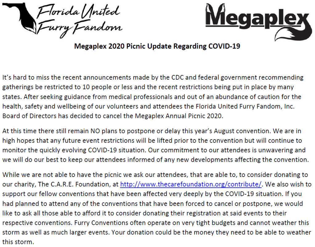 Megaplex cancels Picnic, meanwhile taking a wait and see on con.