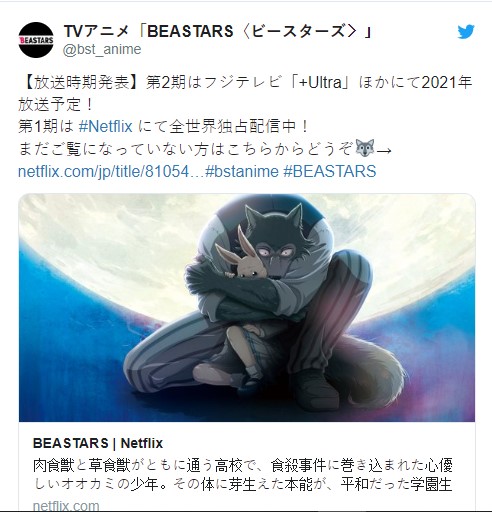 The official Twitter account for TV anime series BEASTARS confirmed on March 20 that the adaptation of Paru Itagaki‘s award-winning manga series will be getting a second season in 2021.