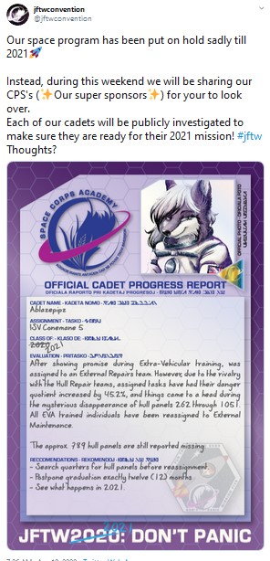 Just The Fur Weekend just announced that their 2020 convention has been Postponed to April 2 to 4 2021