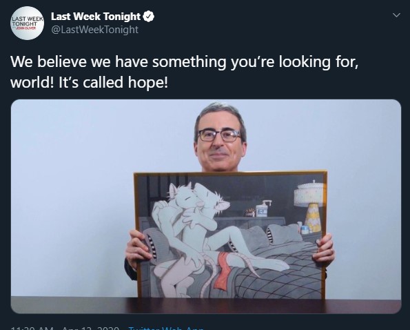 First of all you get John Oliver wanting out of the blue a work by an artist most of us in the furry fandom have never heard of before.