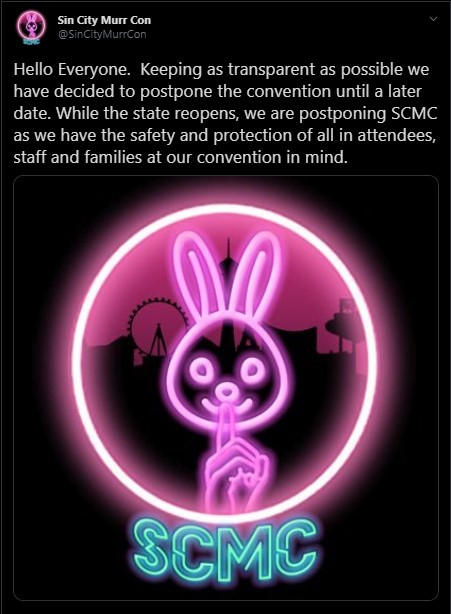 Sin City Murr Con announced that there Twitter that there place in Las Vegas from June 26 to 28, 2020 has been postponed although no future date was posted.