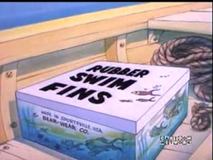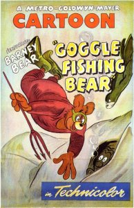 Today, I will showcase Barney Bear’s Goggle Fishing Bear, released by MGM in January 1949. In this just over seven minute short cartoon, the titular character decides to try his paw at spearfishing with a massive trident and a garish swimsuit.