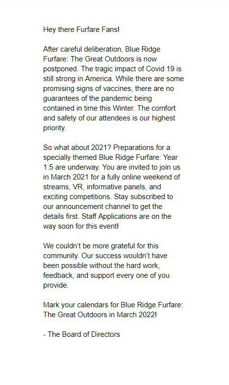 Blue Ridge FurFare Announce 2021 Plans