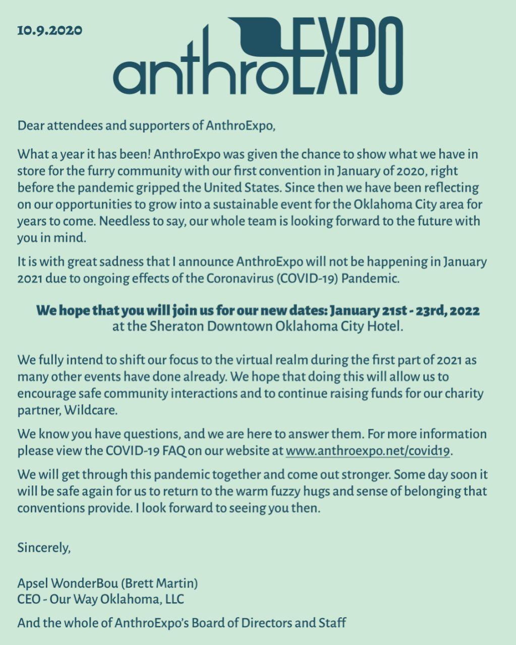 Furry JOA AKA Furry Joining of Asia a Korean Fur Con moves the date of their 2 convention which was to be held in Feb 2021 to Feb 2022