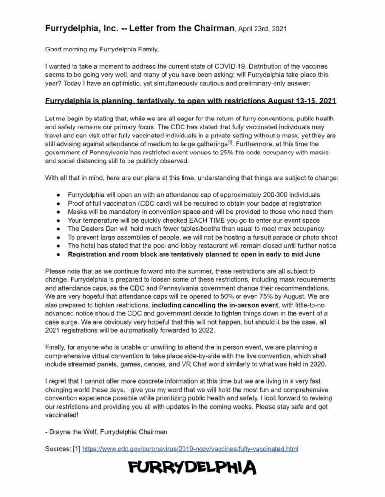 Furrydelphia to Hold in Person Con This August Posted on 04/27/2021 by Ahmar Wolf Share this: Click to share on Pinterest (Opens in new window) Pinterest Click to share on Facebook (Opens in new window) Facebook Click to share on X (Opens in new window) X Click to share on Tumblr (Opens in new window) Tumblr More Click to share on LinkedIn (Opens in new window) LinkedIn Click to print (Opens in new window) Print Click to email a link to a friend (Opens in new window) Email Like Loading... Published by Ahmar Wolf I am interested in just about everything View all posts by Ahmar Wolf