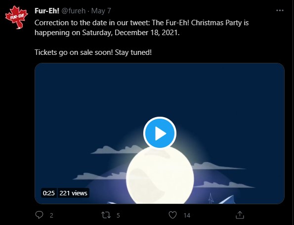 Correction to the date in our tweet: The Fur-Eh! Christmas Party is happening on Saturday, December 18, 2021.