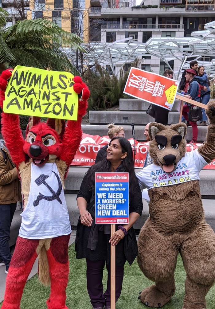 Maybe you were trudging through last month’s snow flurry when you caught a glimpse of shaggy brown fur directing traffic around sledders near Cal Anderson Park. Or you were out for a night of dancing and drinks when you saw a pair of impossibly thick eyebrows wiggling in your direction. Or maybe it was at last summer’s rally to tax Amazon when your eye was drawn to a pair of anticapitalist canines, fangs bared, standing with Kshama Sawant.