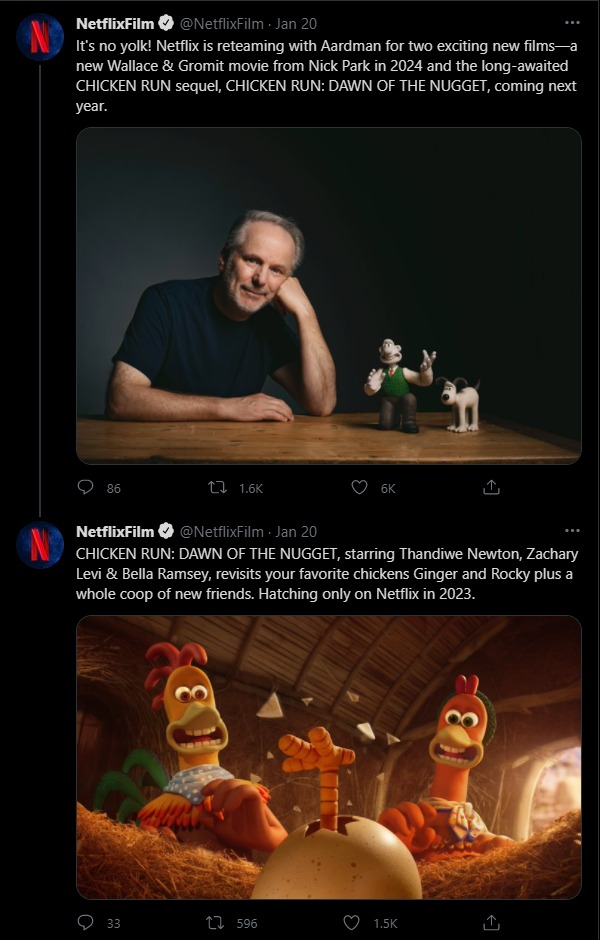 Wallace and Gromit, Chicken Run Is Coming Back Posted on 02/06/2022 by Ahmar Wolf Share this: Click to share on Pinterest (Opens in new window) Pinterest Click to share on Facebook (Opens in new window) Facebook Click to share on X (Opens in new window) X Click to share on Tumblr (Opens in new window) Tumblr More Click to share on LinkedIn (Opens in new window) LinkedIn Click to print (Opens in new window) Print Click to email a link to a friend (Opens in new window) Email Like Loading... Published by Ahmar Wolf I am interested in just about everything View all posts by Ahmar Wolf