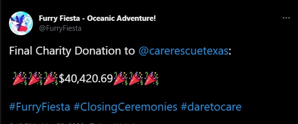 We here at Furry Times Congratulate Texas Furry Fiesta for doing such an amazing job this past weekend. We are blown away by the numbers your reporting.