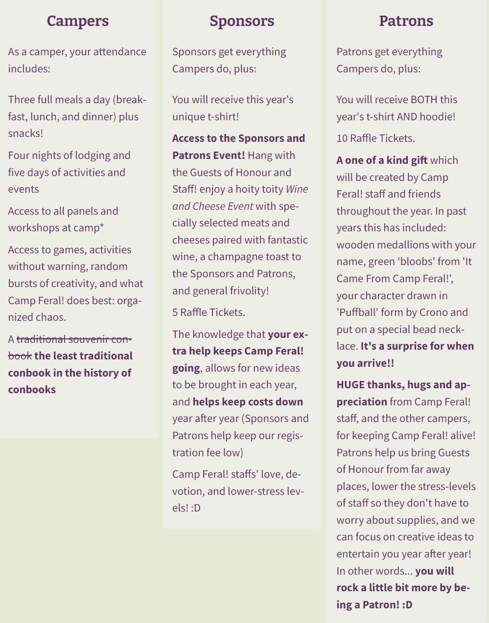 Camp Feral! Registration Open 04/12/2022 Ahmar Wolf Camp Feral! is a furry camping event that takes place Aug 25 to 29 2022 at Algonquin Park, Ontario Canada I know it sounds expensive but you got to look at it this way, it does cover everything. LINK Share this: Click to share on Pinterest (Opens in new window) Pinterest Click to share on Facebook (Opens in new window) Facebook Click to share on X (Opens in new window) X Click to share on Tumblr (Opens in new window) Tumblr More Click to share on LinkedIn (Opens in new window) LinkedIn Click to print (Opens in new window) Print Click to email a link to a friend (Opens in new window) Email Like Loading...
