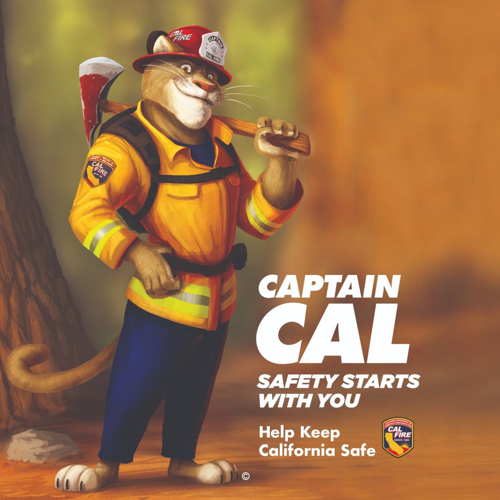 Cal Fire’s firefighting mascot. A former Disney artist, Toby Wilson, created the concept art for Captain Cal for free.