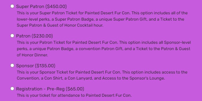 Painted Desert Fur Con Registration Open 08/11/2022 Ahmar Wolf Link to Reg Share this: Click to share on Pinterest (Opens in new window) Pinterest Click to share on Facebook (Opens in new window) Facebook Click to share on X (Opens in new window) X Click to share on Tumblr (Opens in new window) Tumblr More Click to share on LinkedIn (Opens in new window) LinkedIn Click to print (Opens in new window) Print Click to email a link to a friend (Opens in new window) Email Like Loading...