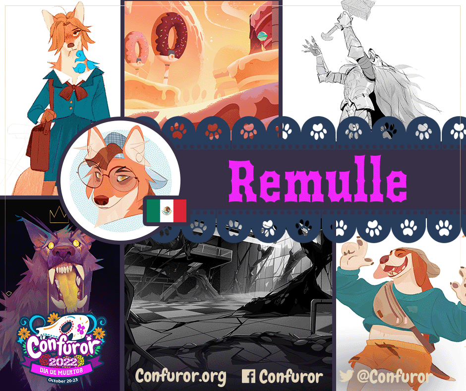Introducing Remulle: Senior all-around BG artist. Visual swiss army pocket knife, occasional VA and full time doodler. And they are one of our guest artists at Confuror 2022!