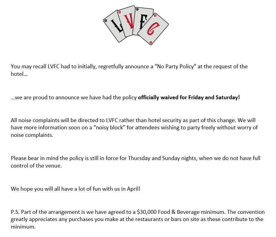 So You Can Party in Las Vegas 10/08/2022 Ahmar Wolf Ls Vegas Fur Con Party Rules Share this: Click to share on Pinterest (Opens in new window) Pinterest Click to share on Facebook (Opens in new window) Facebook Click to share on X (Opens in new window) X Click to share on Tumblr (Opens in new window) Tumblr More Click to share on LinkedIn (Opens in new window) LinkedIn Click to print (Opens in new window) Print Click to email a link to a friend (Opens in new window) Email Like Loading...