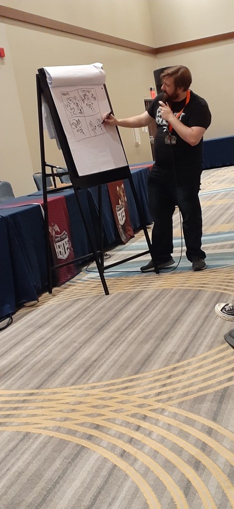 I had time to kill in the afternoon, so I decided to volunteer. They put me at the entrance to the Art Show. In case your wondering what did… check badges and make sure no water bottles, no backpacks or bags. I wound up doing it for 2 hours, what can I say I was tired. The chair they gave me was comfortable.