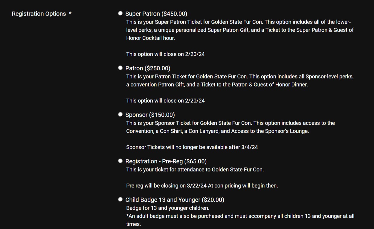 Golden State Fur Con Reg Open Posted on 05/16/2023 by Ahmar Wolf gsfurcon.com/register/ Share this: Click to share on Pinterest (Opens in new window) Pinterest Click to share on Facebook (Opens in new window) Facebook Click to share on X (Opens in new window) X Click to share on Tumblr (Opens in new window) Tumblr More Click to share on LinkedIn (Opens in new window) LinkedIn Click to print (Opens in new window) Print Click to email a link to a friend (Opens in new window) Email Like Loading... Published by Ahmar Wolf I am interested in just about everything View all posts by Ahmar Wolf