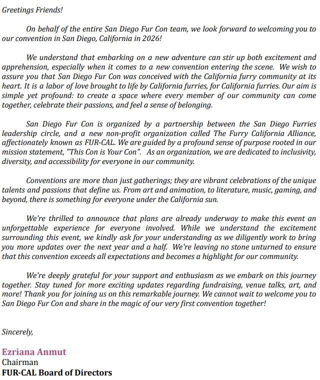 Introducing: San Diego Fur Con 05/01/2024 Ahmar Wolf https://www.facebook.com/SanDiegoFurCon Share this: Click to share on Pinterest (Opens in new window) Pinterest Click to share on Facebook (Opens in new window) Facebook Click to share on X (Opens in new window) X Click to share on Tumblr (Opens in new window) Tumblr More Click to share on LinkedIn (Opens in new window) LinkedIn Click to print (Opens in new window) Print Click to email a link to a friend (Opens in new window) Email Like Loading...