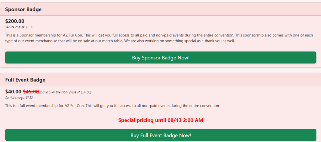 AZ Fur Con Update 08/02/2024 Ahmar Wolf 10/11 – 10/13 2024 Mesa Convention Center 263 N. Center Street Mesa AZ 85201 (623) 232-0580 Share this: Click to share on Pinterest (Opens in new window) Pinterest Click to share on Facebook (Opens in new window) Facebook Click to share on X (Opens in new window) X Click to share on Tumblr (Opens in new window) Tumblr More Click to share on LinkedIn (Opens in new window) LinkedIn Click to print (Opens in new window) Print Click to email a link to a friend (Opens in new window) Email Like Loading...