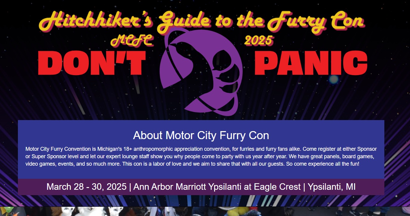 Motor City Fur Con 2025 Reg Now Open 09/29/202409/29/2024 Ahmar Wolf For more info and to Reg https://motorcityfurrycon.org/ Share this: Click to share on Pinterest (Opens in new window) Pinterest Click to share on Facebook (Opens in new window) Facebook Click to share on X (Opens in new window) X Click to share on Tumblr (Opens in new window) Tumblr More Click to share on LinkedIn (Opens in new window) LinkedIn Click to print (Opens in new window) Print Click to email a link to a friend (Opens in new window) Email Like Loading...