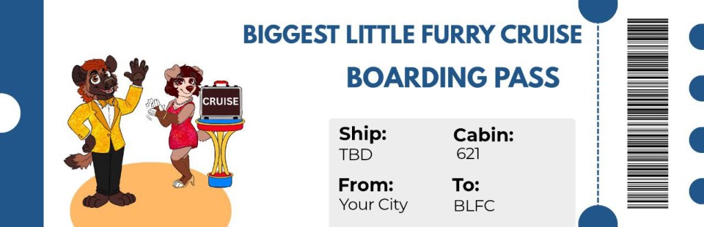 BLFC Sets 2026 Date Posted on 12/23/2025 by Ahmar Wolf Plan your itinerary, put on your sunscreen, and pack your water wings. Embark on the Biggest Little Furry Cruise, shipping off to faraway seas, from Monday, October 12th to Thursday, October 15th 2026. (We’re onna boat!) Share this: Click to share on Pinterest (Opens in new window) Pinterest Click to share on Facebook (Opens in new window) Facebook Click to share on X (Opens in new window) X Click to share on Tumblr (Opens in new window) Tumblr More Click to share on LinkedIn (Opens in new window) LinkedIn Click to print (Opens in new window) Print Click to email a link to a friend (Opens in new window) Email Like Loading... Published by Ahmar Wolf I am interested in just about everything View all posts by Ahmar Wolf