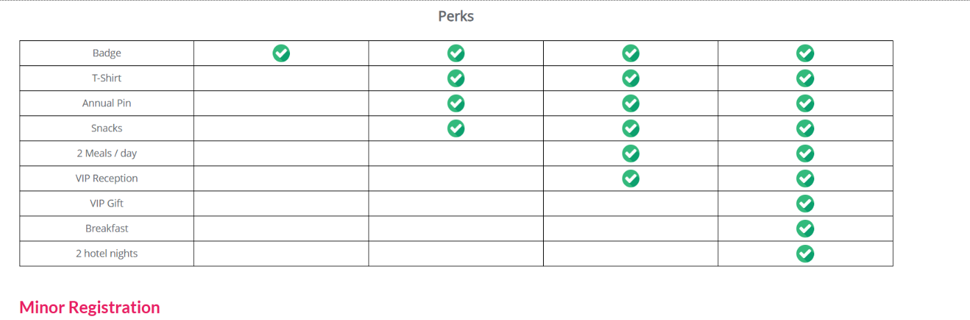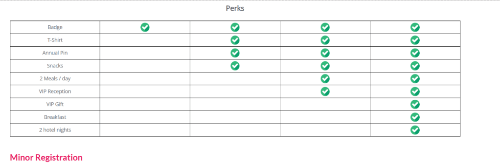 | Attendee | Backer | Sponsor | Raven god | |