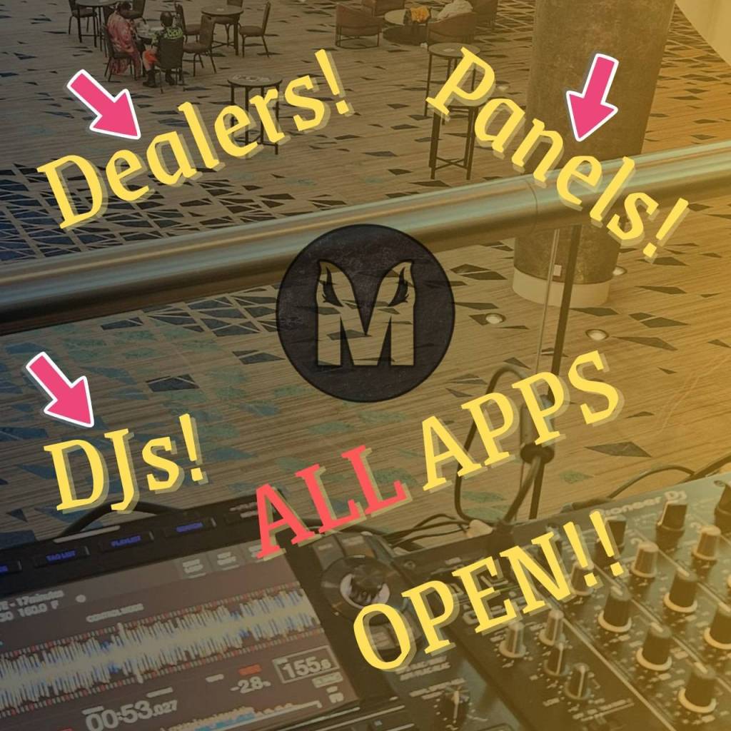 Ready to participate in the tails of terror? Dealers, Panels AND DJ apps are all OPEN.