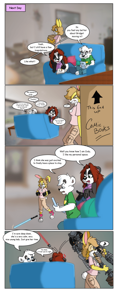 Long story short, I had distanced myself from the furry fandom in 2008, and was searching for other communities to belong to. Though I didn’t know it at the time, I was suffering from extreme depression. I changed who I was and pretended to be someone I was not – a straight, masculine, anti-social male. I was absolutely miserable, but I tried to find a community to feel a part of during that time of my life. I drew art, but I didn’t always feel a connection to it. Though the other fandoms were good in their own ways and I have nothing against any of them, I just didn’t experience the brotherhood and family closeness, or the support and love and encouragement I felt with the furry fandom. =C