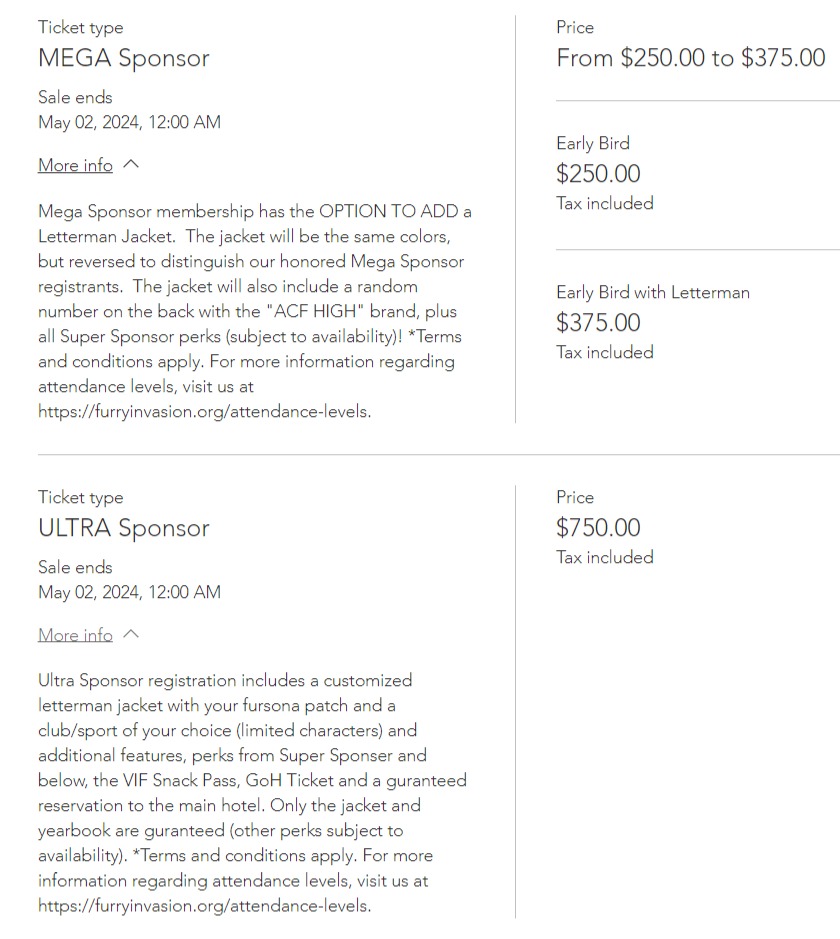 Relive that high school vibe with exclusive ultra sponsor varsity jackets, included with the 2024 ultra sponsor membership tier! Get ’em before May 2024! https://furryinvasion.org/register