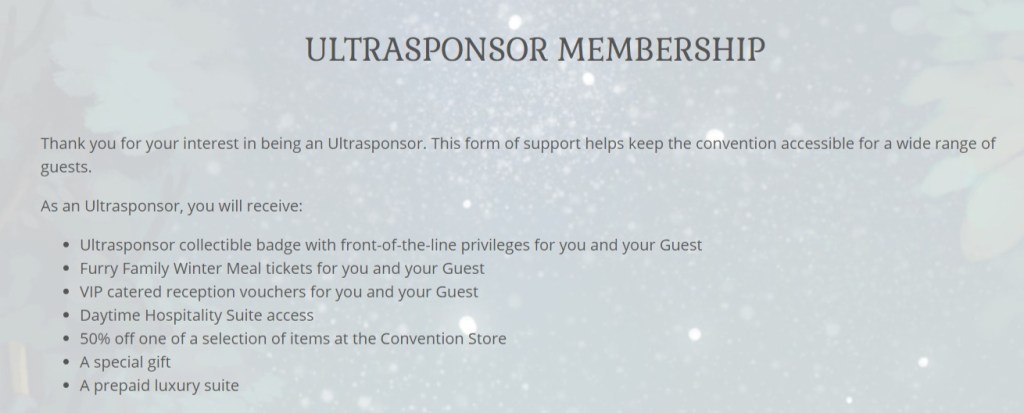 Thank you for your interest in being an Ultrasponsor. This form of support helps keep the convention accessible for a wide range of guests.