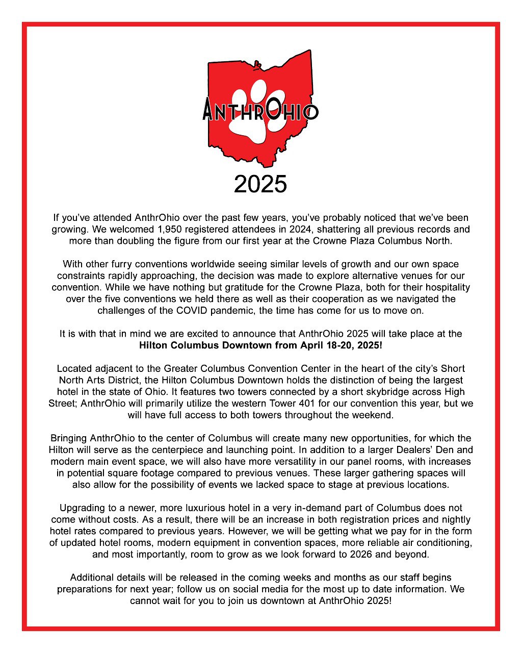 AnthrOhio is excited to announce that our new venue will be Hilton Columbus Downtown!