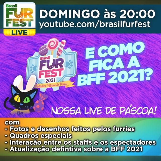 We remind you that all communications from BFF will be made only on our page http://www.brasilfurfest.com.br, on our Telegram ad channel (t.me/bffanuncios) and also on our social media.