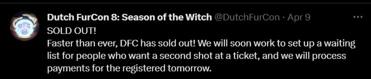 Dutch Fur Con (Netherlands) which starts tomorrow has released a list of suggestions