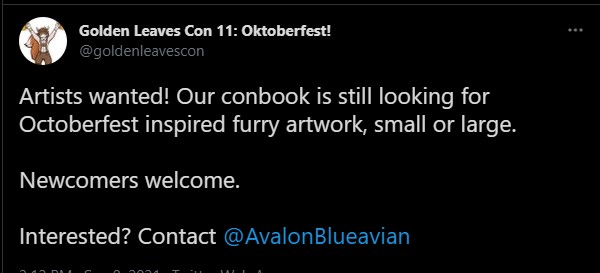 Golden Leaves Con (Switzerland) is looking for art for it’s conbook. If your not well known in the furry community with your art. Now is your chance.