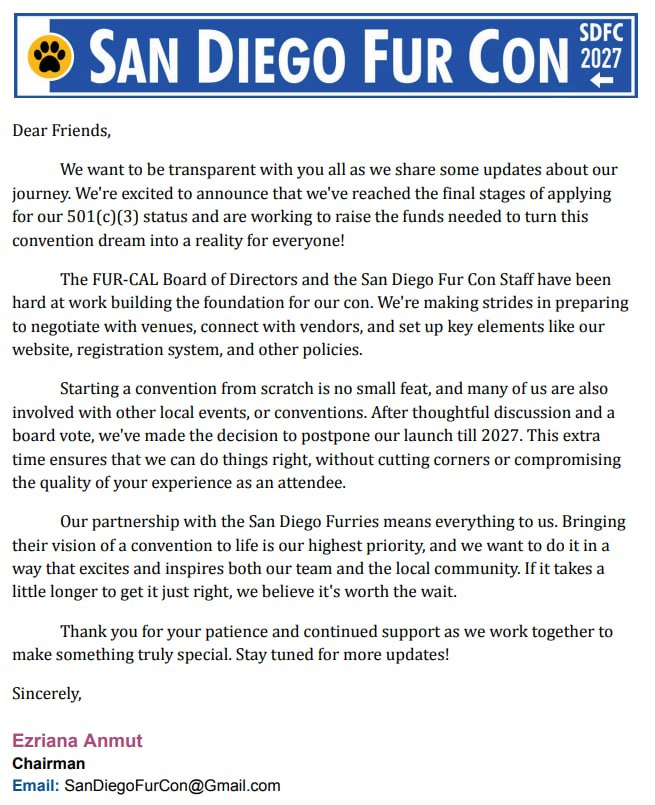 San Diego Fur Con 2025 hosts panel at Further Confusion 2025.