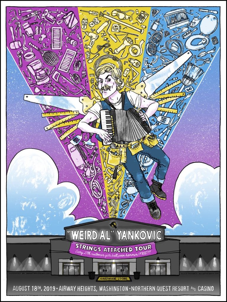 Weird Al Tour Poster #4 05/28/2019 Ahmar Wolf Share this: Click to share on Pinterest (Opens in new window) Pinterest Click to share on Facebook (Opens in new window) Facebook Click to share on X (Opens in new window) X Click to share on Tumblr (Opens in new window) Tumblr More Click to share on LinkedIn (Opens in new window) LinkedIn Click to print (Opens in new window) Print Click to email a link to a friend (Opens in new window) Email Like Loading...