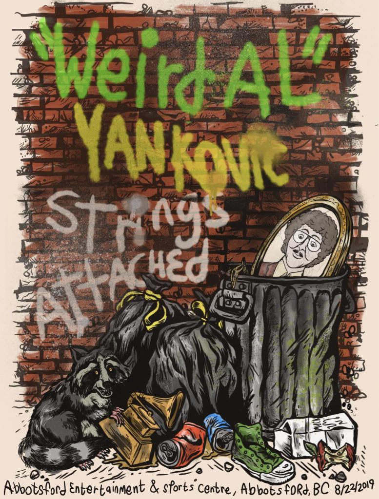 Weird Al Canada Tour Poster 08/27/2019 Ahmar Wolf Share this: Click to share on Pinterest (Opens in new window) Pinterest Click to share on Facebook (Opens in new window) Facebook Click to share on X (Opens in new window) X Click to share on Tumblr (Opens in new window) Tumblr More Click to share on LinkedIn (Opens in new window) LinkedIn Click to print (Opens in new window) Print Click to email a link to a friend (Opens in new window) Email Like Loading...